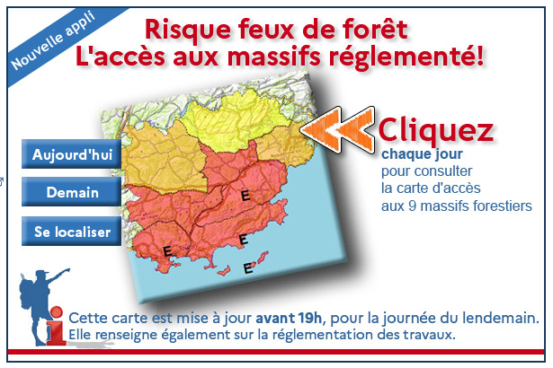 Dans le Var, l'emploi du feu est réglementé en toutes saisons. En été, les accès aux massifs peuvent être restreints en raison des conditions météo (chaleur, orages, vents violents)