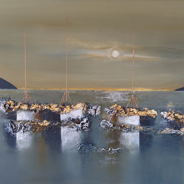 Acrylique, plâtre & feuille d'or