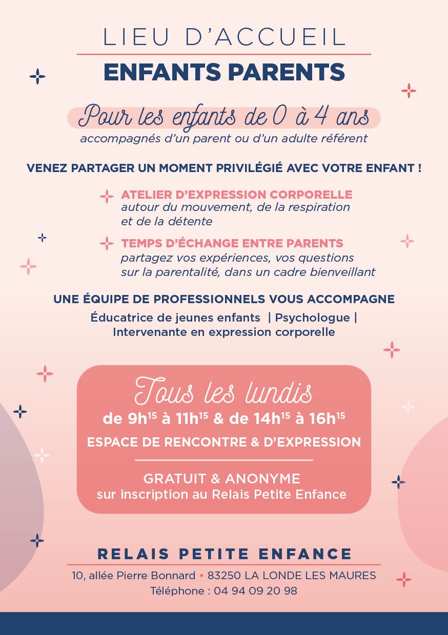 Le Lieu d'Accueil Enfants Parents est un "espace de rencontre et d'expression" dédié aux enfants de la naissance jusqu’à 4 ans, accompagnés d’un parent ou d’un adulte référent.