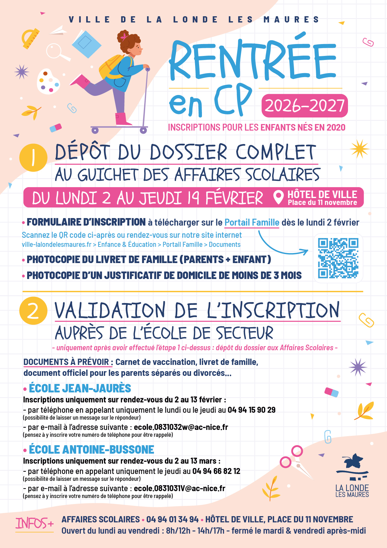 Service des Affaires Scolaires • 04 94 01 34 94 • Hôtel de Ville