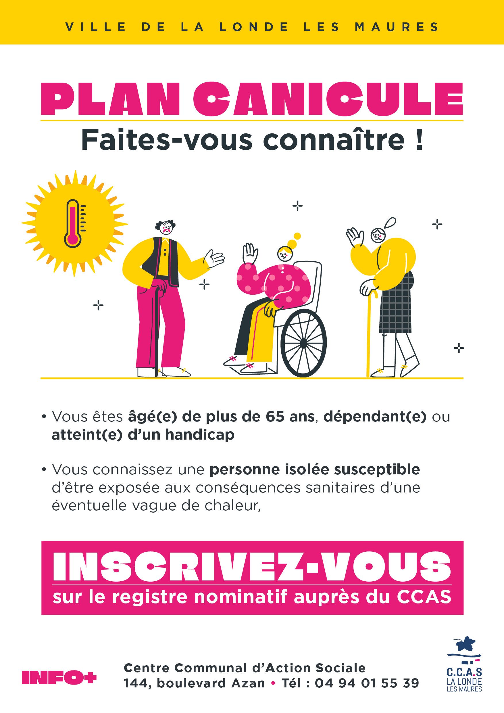 Si vous êtes vous-même concernés (ou que l'un de vos proches ou voisins risque de l'être), vous pouvez vous inscrire sur le registre auprès du CCAS soit en vous rendant au CCAS (144, boulevard Azan), soit par téléphone (04 94 01 55 39), ou en retournant le formulaire sous plis confidentiel (BP 62 - 83250 La Londe les Maures).